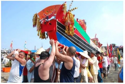 送大暑船的这一民间习俗由来已久。传闻在清朝同治年间,椒江葭址一带常有病疫流行,尤以大暑节前后为甚。当地的居民认为是五圣(传说中的五位瘟神)所致,于是,便在葭沚江边建了一座五圣庙。由于葭芷处于椒江口附近,沿江渔民居多,为了祈求出海捕鱼平安,遂决定在大暑这一天集体供奉五圣,并将载有供品的船只送至椒江口外,为五圣享用。