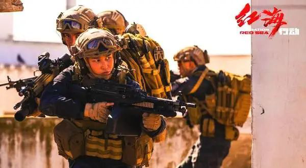 《红海行动》是林超贤团队《湄公河行动》原班制作人马拍摄的,根据也门撤侨”真实事件改编,讲述我军特种部队蛟龙突击队在局势紧张的非洲,在恶劣环境之下执行撤侨任务,解救中国公民的故事。电影中展现多种世界级武器装备,将中国海军和特战部队拍得威武霸气。