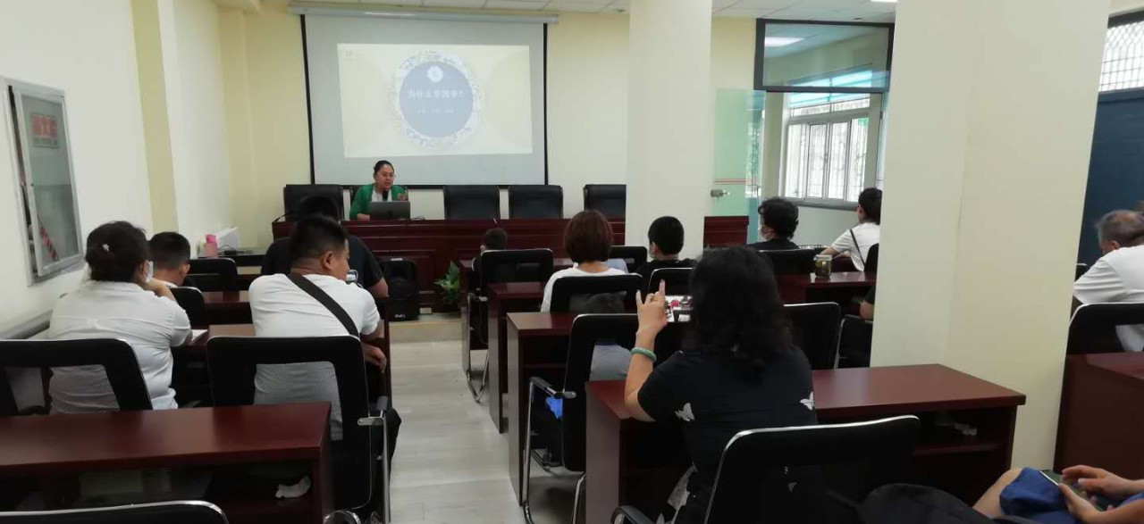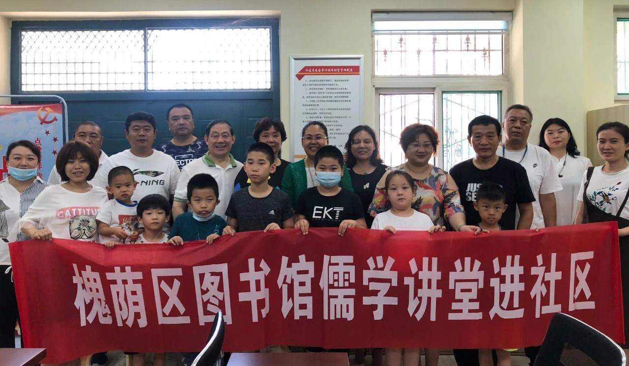 槐荫区图书馆在做好总馆图书借阅和开展读书活动的同时,积极组织相关工作人员下沉社区,协助分馆及社区服务点开展阅读推广活动。为更好的丰富社区居民群众的精神文化生活,2020年7月30日上午,槐荫区图书馆工作人员走进五里沟街道办事处平安里社区开展儒学讲堂进社区活动。