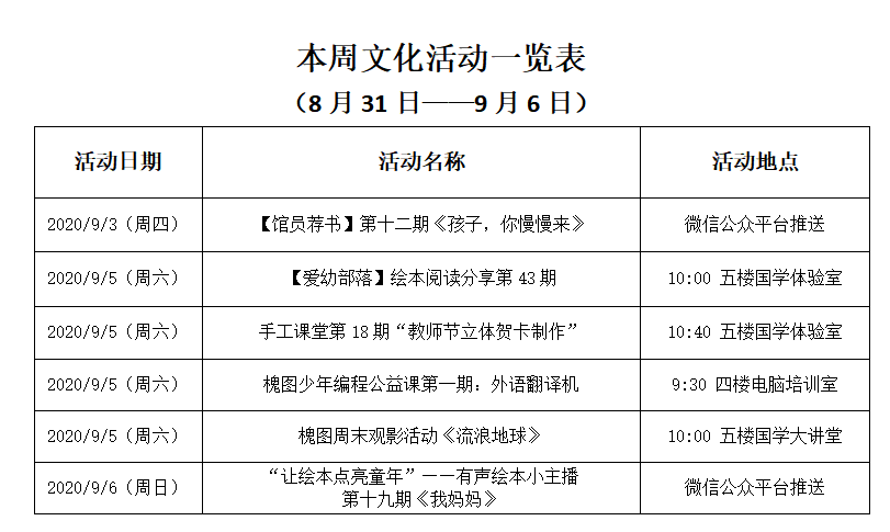 活动预告 | 槐图拍了拍你,本周活动安排来啦!(8.31-9.6)