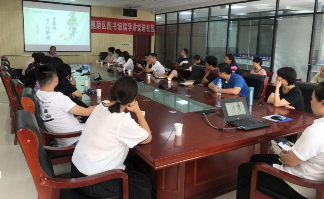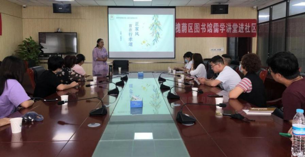 槐荫区图书馆在做好总馆图书借阅和开展读书活动的同时,积极组织相关工作人员走进社区,8 月 27 日上午10:00,槐荫区图书馆工作人员走进玉清湖街道办事处,开展儒学讲堂进社区活动。