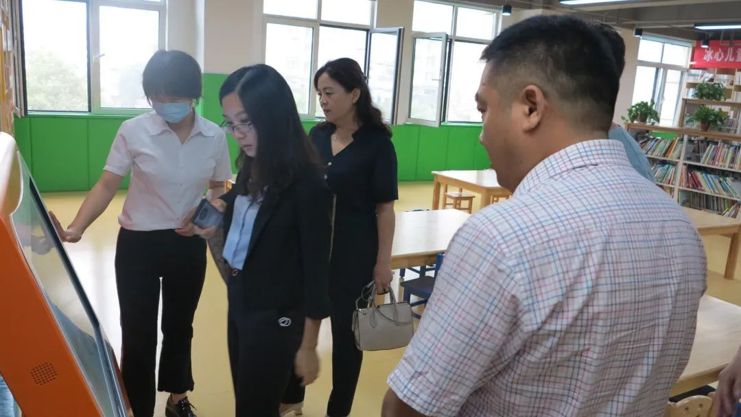 刘霞一行参观了槐荫书房、报刊阅览、文献外借、少儿阅读等功能分区,详细了解了图书馆馆藏分布、读者服务和特色活动开展等情况。