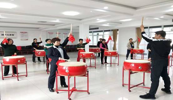 “哒哒 哒哒 哒-”这是在槐荫区文化馆分馆开设的大鼓课程,群众随着高进老师教授的鼓点,酣畅淋漓的敲着大鼓。