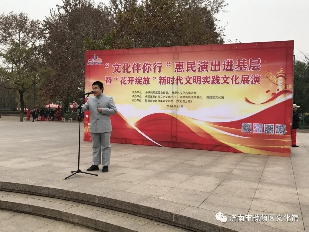 由中共槐荫区委宣传部、槐荫区文化和旅游局主办,槐荫区新时代文明实践中心、道德街街道办事处、槐荫区文化馆承办,道德街文化站协办的“文化伴你行”惠民演出走进基层暨“花开绽放”新时代文明实践文化展演如期而至。