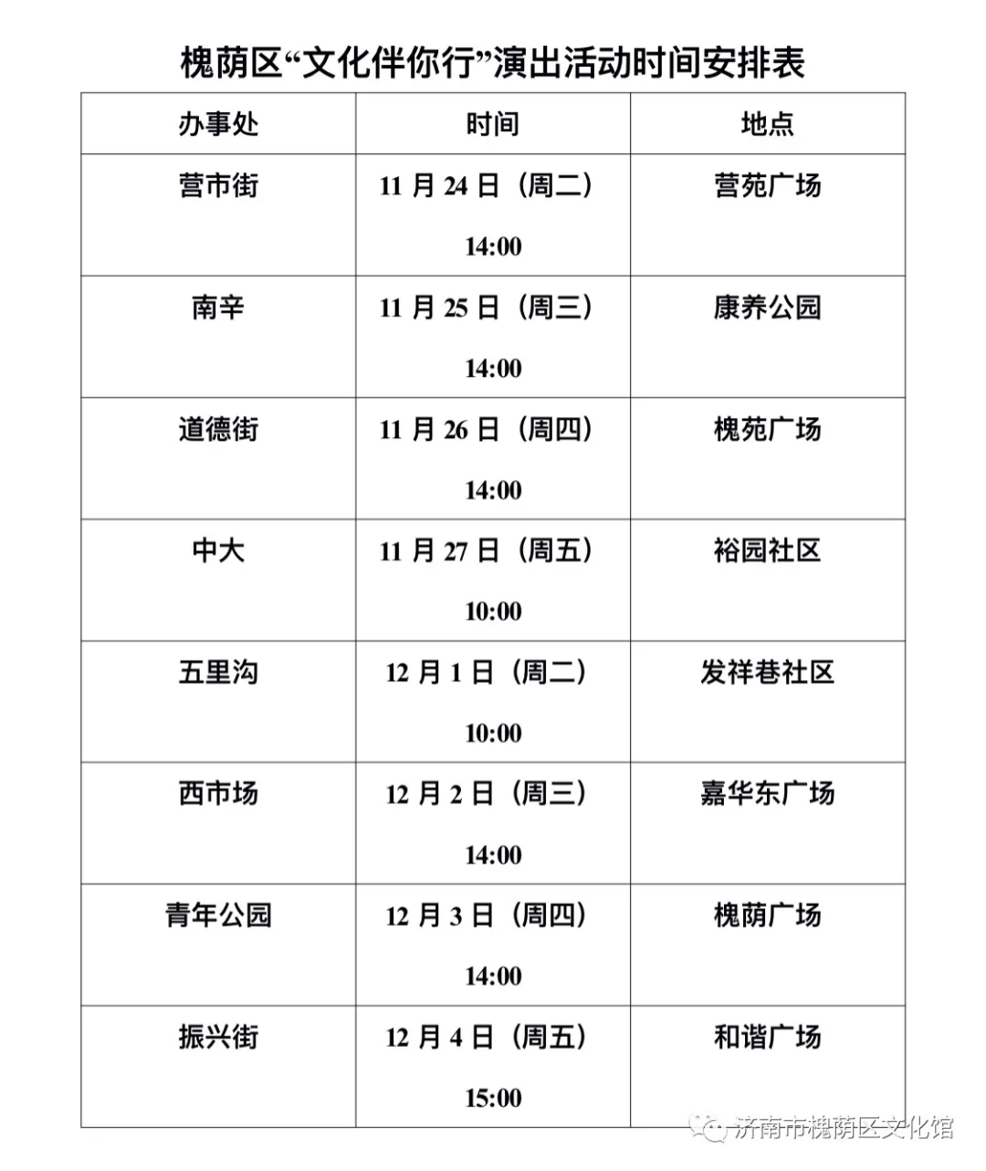 还将有7个槐荫区的街道办事处为我们带来精彩的演出活动