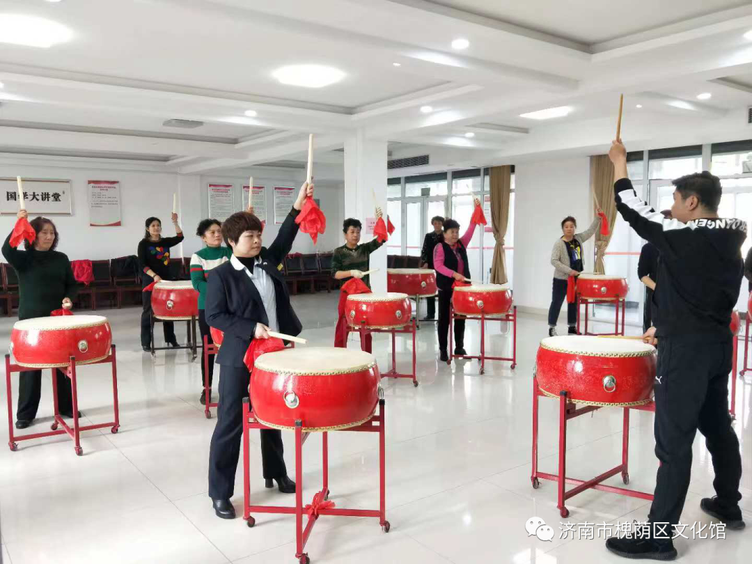 “哒哒 哒哒 哒-” 这是在槐荫区文化馆分馆开设的大鼓课程,群众随着高进老师教授的鼓点,酣畅淋漓的敲着大鼓。。