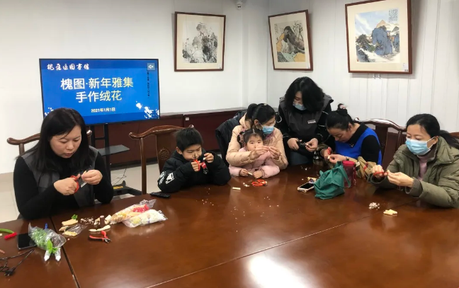 红梅绽放迎牛年,喜庆吉祥福满园。2021年1月1日,槐荫区图书馆开展了造物玩家第14期活动“指尖技艺·手工仿绒花”,活动旨在激发广大读者对中华民族文化艺术瑰宝的兴趣,弘扬传统文化,传承手工艺术。