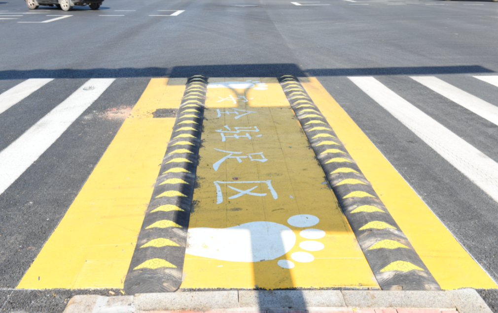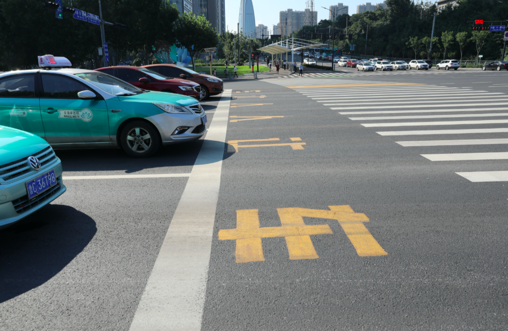 记者在经十舜华路口看到,南北向的斑马线上设有一块黄色的“行人驻足区”,高传涛说:“考虑到有些老年人和儿童步履较为缓慢,无法在一个绿灯时间内通过马路,马路上还专门设置了行人驻足区,通过施划醒目的黄色标线,保障一次不能通过的行人能在安全位置等候下一个绿灯放行。”