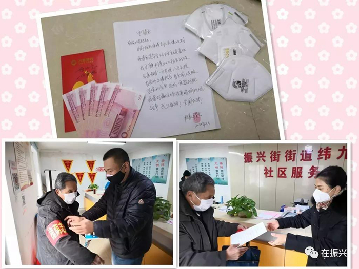 在纬九路社区,78岁的兴盛小区居民马登生感动着社区全体人员。马登生老人作为社区志愿者骨干、兴盛小区楼长代表,常年热心于社区事务。这次,老人来到社区,提交了一份手写的“申请书”和一个写有“一份心意、一份责任”的红包,同时转交给工作人员3个口罩。老人表示,国家有困难,医生和工作人员都很辛苦,自己只是捐了一小点钱,微不足道。