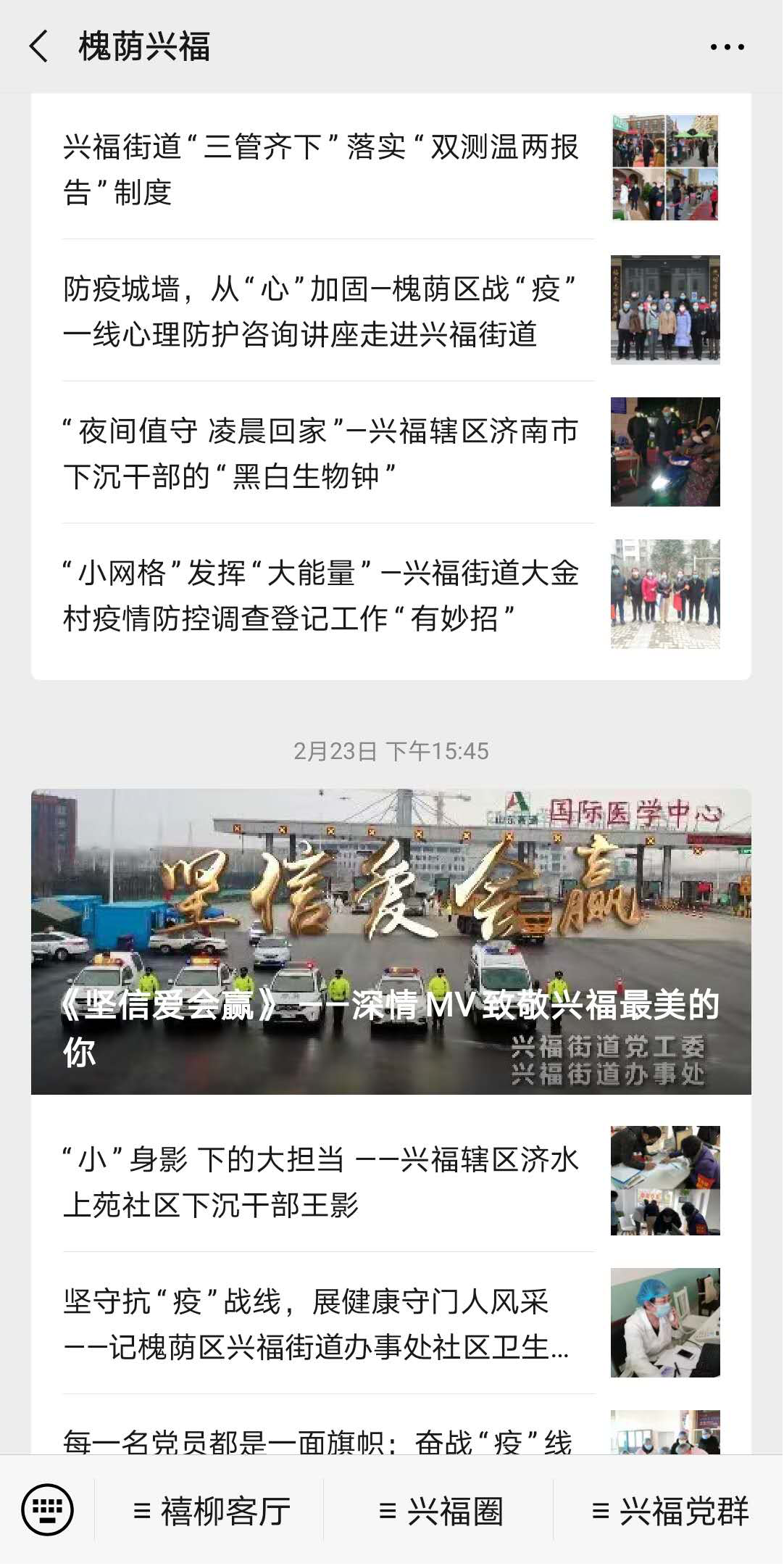 兴福街道充分利用网络新媒体受众广、传播快、覆盖面广的优势,借助“槐荫兴福”微信公众号、美篇、村(居)民微信群、qq群等平台,及时发布上级有关政策、通知、公告以及防控知识等,引导群众正面、理性对待疫情。