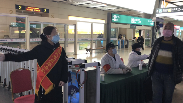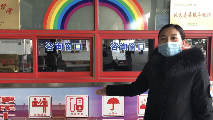返工热潮的出现,济南西站客流量逐渐增加,在济南西站有这样一群“彩虹”志愿者,疫情期间这支全由女性组成的队伍一改往日工作内容,她们在站内测量出站旅客体温,分流旅客,登记信息,守在抗疫前线,为西站安全把关。