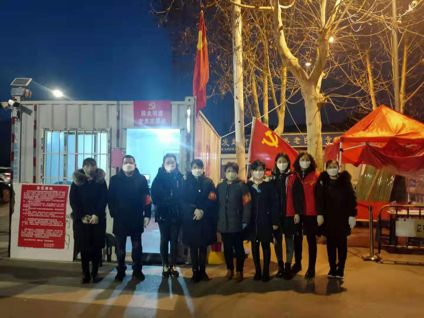 凌晨的兴济河畔静谧安详,闫千户片区西口党员志愿岗上的志愿者坚守岗位。闫千户片区坚持把文明实践志愿网格与综治化网格相结合,以闫千户片区功能型党委为枢纽,实现片区4个文明实践分中心的有机集合。“作为红色基因的传承者,我们要发扬同舟共济、敢为人先、乐于奉献的志愿者精神,始终战斗在战疫一线。”闫千户村志愿者余晓亮自豪的说。在战“疫”一线,时时处处都有志愿者们入户摸排、消毒杀菌、检测值守的“逆行”身影,切实用实际行动将疫情防控工作在每一个网格中落实落细落小。