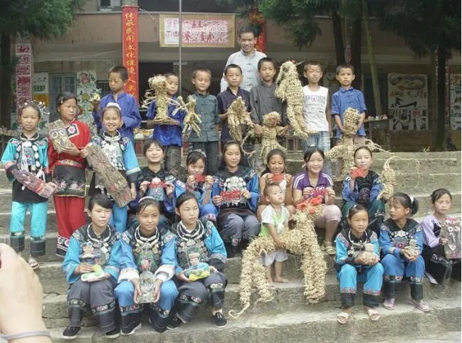 “蒲公英行动”种子教师腊尔山希望小学美术老师龙俊甲和他的学生。蒲公英行动官网
