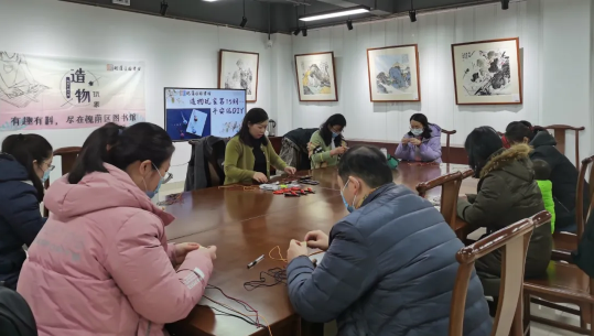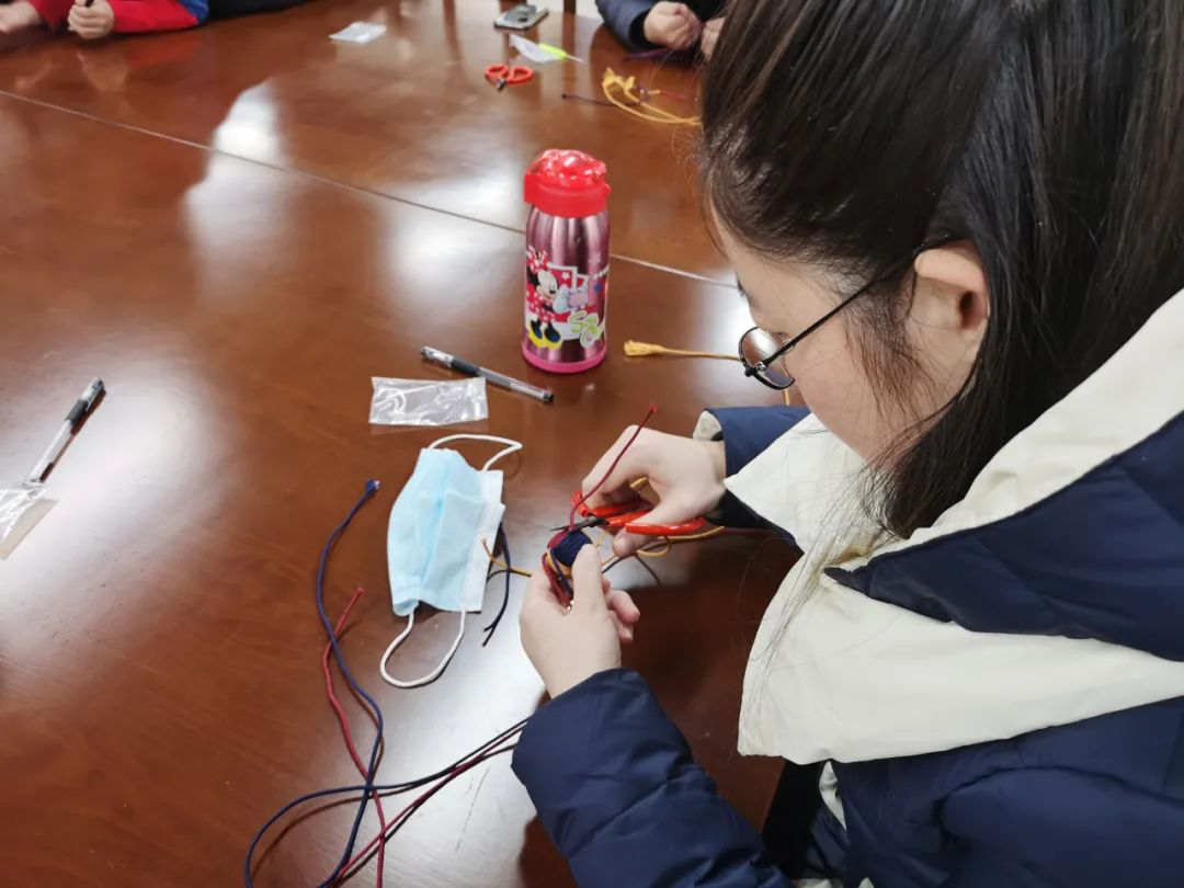 传承手工艺术,放飞指尖梦想,2021年1月16日,槐荫区图书馆开展造物玩家第15期活动,槐图殷老师带领读者一起DIY平安结挂饰。