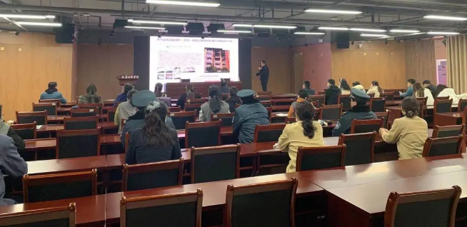 在培训中,娄教官首先通报了近期的火灾情况,重点分析了公共场所火灾、家庭火灾的发展趋势。用通俗易懂的语言向全体干部职工介绍了如何做好火灾预防、着火燃烧原理和初期火灾扑救方法、火场逃生常识和紧急自救等消防知识,并针公共场馆重点部位的用电管理、疏散通道和消防器材使用方法等内容进行了详细的讲解。