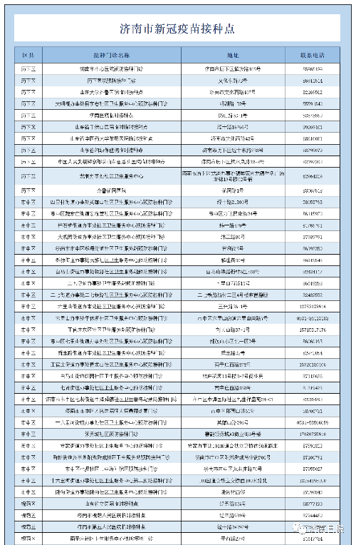 济南新冠疫苗接种点名单 ↓