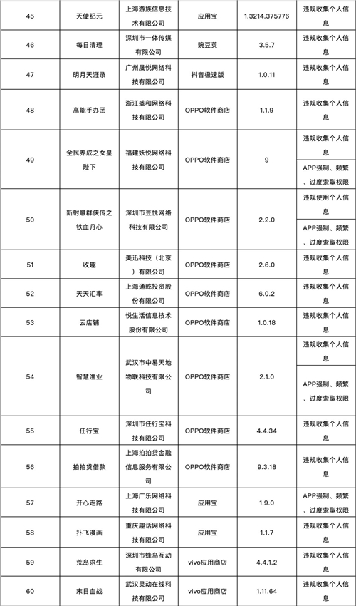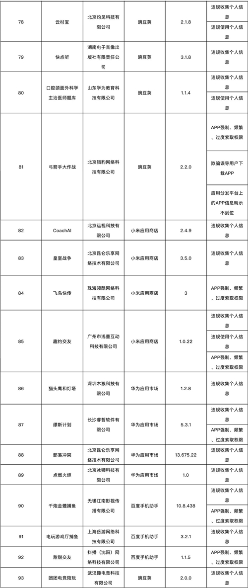 工信部近期组织第三方检测机构对手机应用软件进行检查,重点督促游戏类、工具类存在问题的企业进行整改。截至目前,尚有93款APP未完成整改。各通信管理局按工信部APP整治行动部署,积极开展手机应用软件监督检查,广东省通信管理局检查发现仍有45款APP未完成整改。上述APP应在4月29日前完成整改落实工作。逾期不整改的,工信部将依法依规组织开展相关处置工作。