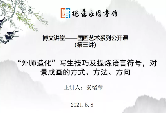 为弘扬中华民族传统文化,丰富广大读者的精神文化生活,2021年5月8日上午,槐荫区图书馆特邀请青年画家秦绪荣老师来馆进行国画艺术赏析系列公益讲座第三期活动。