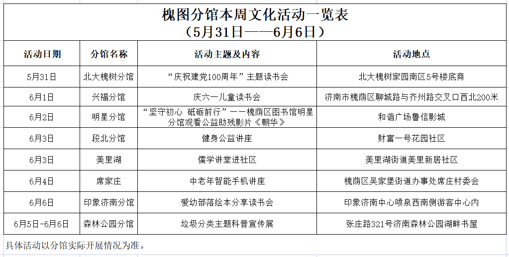 活动预告 | 槐荫区图书馆分馆活动预告(5月31日-6月6日)