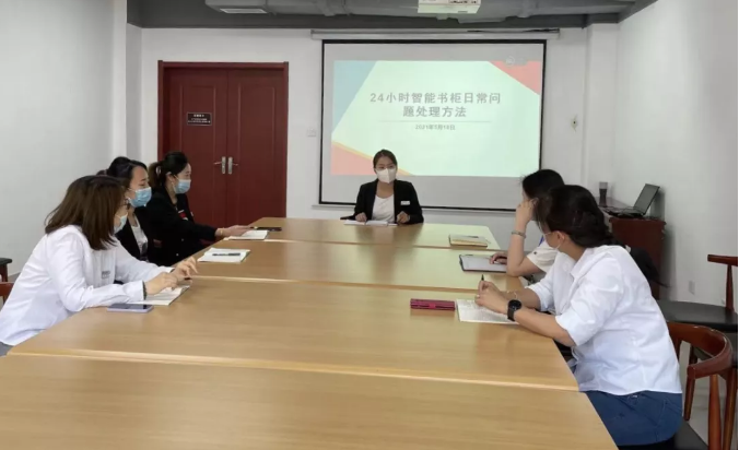 培训会上认真梳理分析馆内智能书柜的使用方法及注意事项,着重讲解规范化操作,专业理论与业务实操相结合。