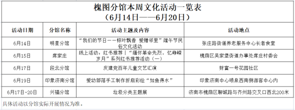 活动预告 | 槐荫区图书馆分馆活动预告(6月14日-6月20日)