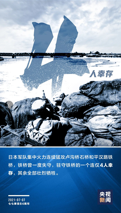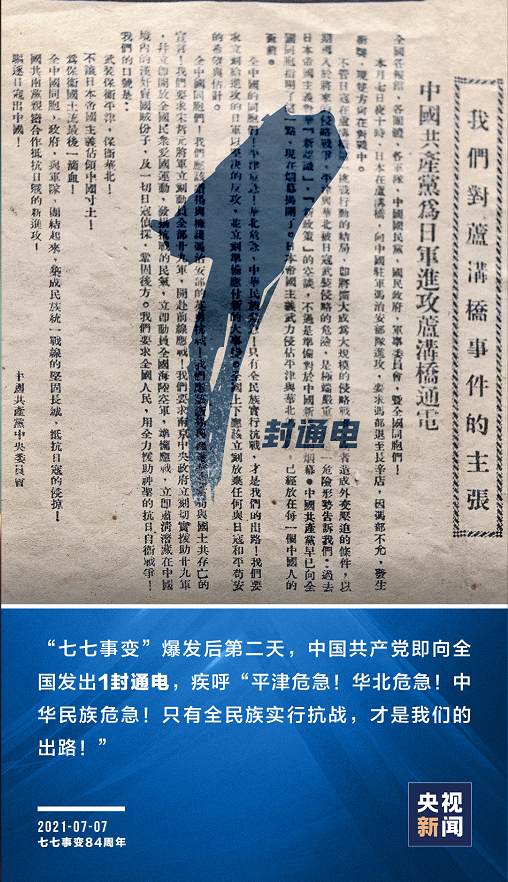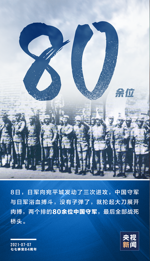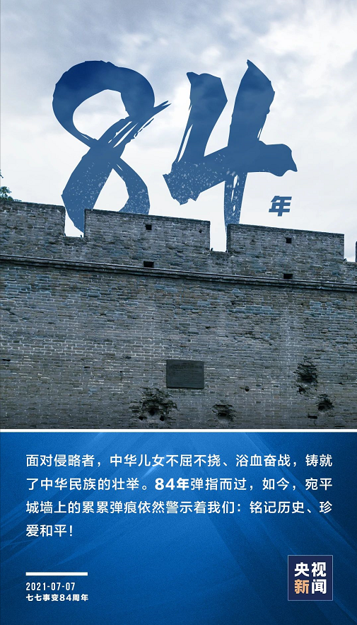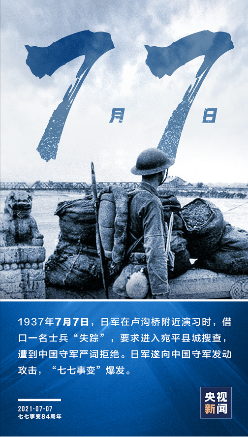 今天(7月7日)是七七事变爆发84周年。84年前,日本侵略者悍然发动全面侵华战争,无数中华儿女不顾生死,为保卫河山浴血奋战,奏响反抗侵略的英雄壮歌。