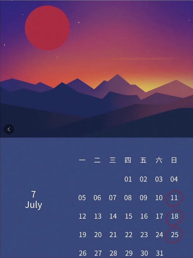 绘画课程计划一期共10次课,自7月上旬起,每周日上午9:30—11:30上课。具体上课日期见下图: