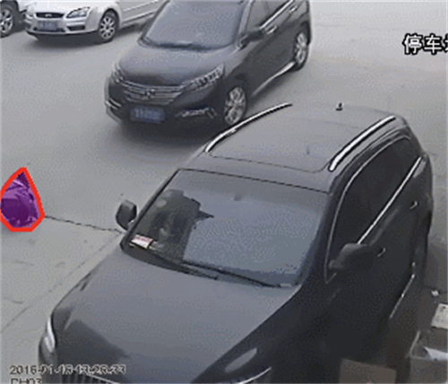 监控画面显示,一名小男孩在停车场道路上低头玩耍,前方一辆SUV车辆驶过。显然,双方并未注意到危险正在发生……