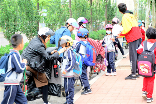 家长骑车出行时,为孩子正确佩戴安全头盔。提醒孩子,未到法定年龄不得驾驶电动自行车和自行车,坚决杜绝驾驶二、三轮摩托车。