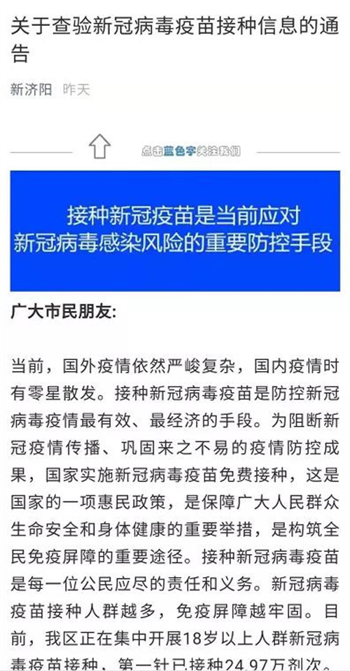 请广大市民尽快就近接种新冠病毒疫苗,同心共筑免疫长城,为保障全区人民共同健康尽一份责任、献一份力量!