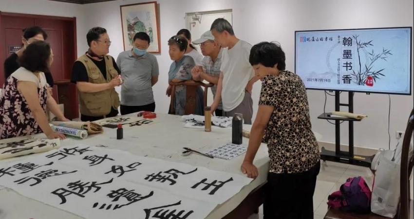 为弘扬传统文化,丰富读者文化生活,7月19日上午,槐荫区新时代文明实践中心、槐荫区图书馆在五楼尼山书院举办“翰墨书香颂华章”成人书法研习班第十期——庆建党百年主题书法创作活动暨结业仪式,20余名学员到场参与。