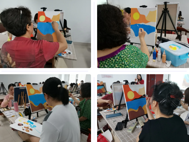 通过本次课程的学习,学员们逐渐掌握了调色的方式方法,在老师的悉心指导下完成了自己第一幅丙烯画作品。