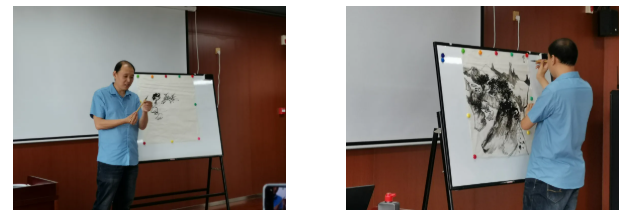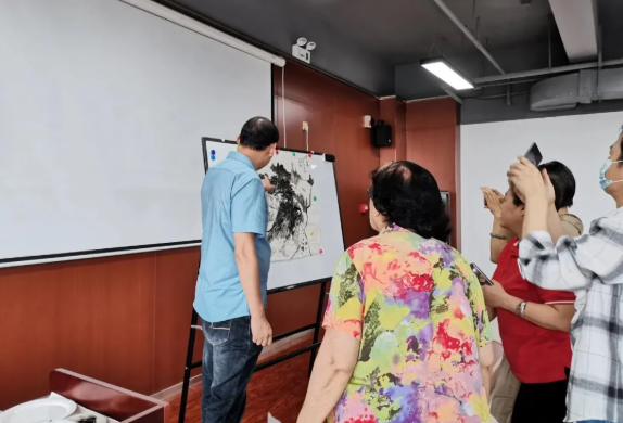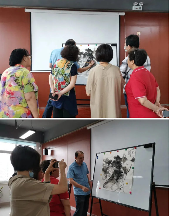 根据这节课的教学内容,秦老师现场创作国画作品,把艺术理论与实际操作结合起来,读者和秦老师积极互动,不时提出疑问,秦老师详细为读者解答,读者在轻松愉快的气氛中,学习传统中国画的创作手法。
