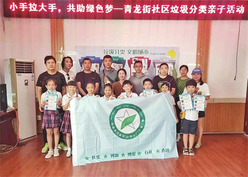 解放路街道青龙街社区开展“小手拉大手,共助绿色梦”垃圾分类亲子活动。(李冬阳 摄)