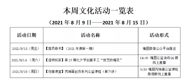 活动预告|槐图本周活动上新啦!(8月9日-8月15日)