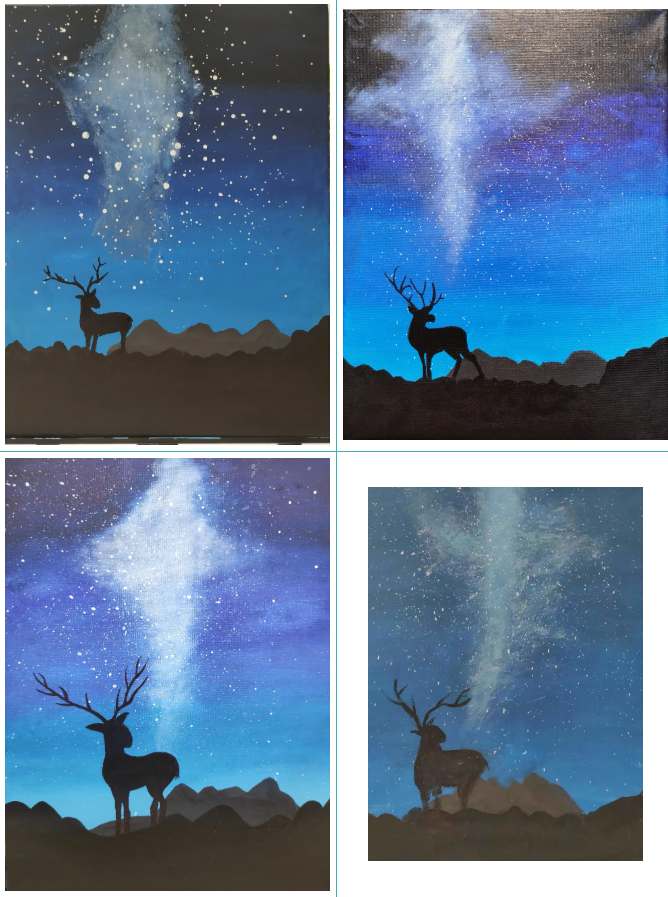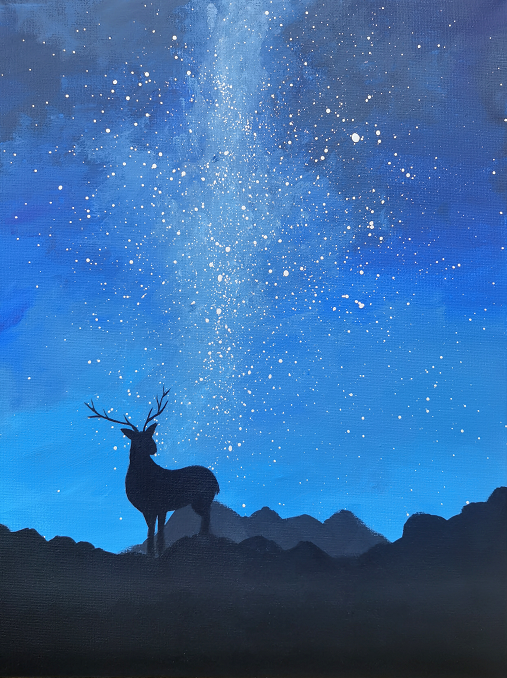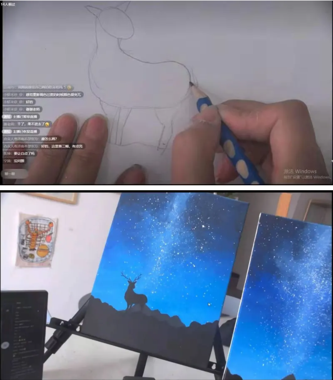 本次课程绘制的作品主题为《星空》,樊老师在直播课堂上边画边讲,深入浅出地讲解丙烯画的调色技法,绘画步骤,并随时回答学员的在线提问。