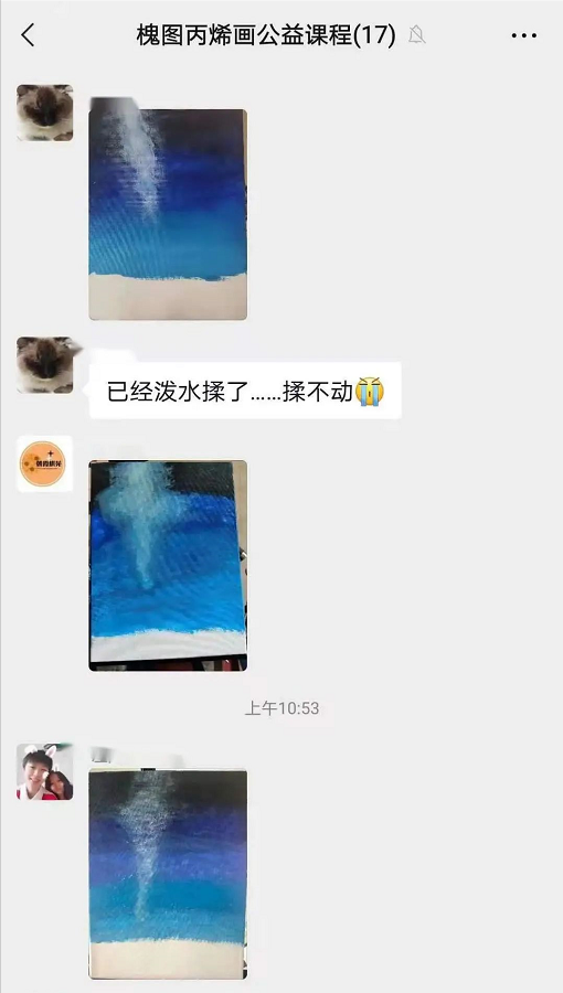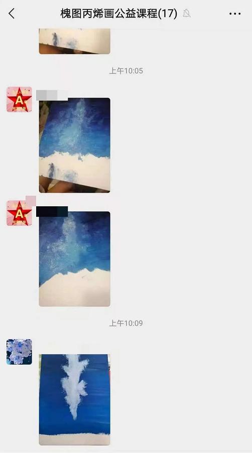 尽管教学形式从线下转移到了线上,但学员的学习热情不减,大家积极地与老师互动,将自己的绘画作品上传微信群与老师交流。