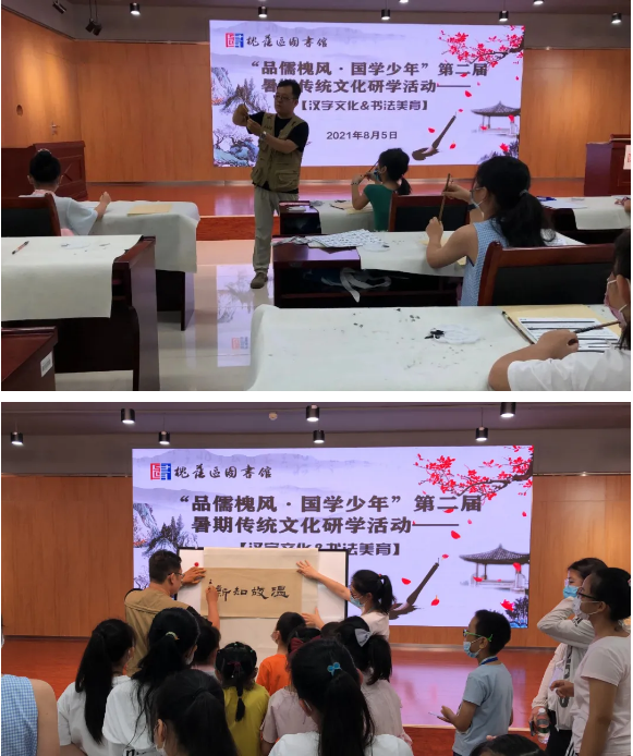 为继承和发扬优秀传统文化,丰富辖区青少年暑期生活,培养少年儿童养成正确的书写习惯,槐荫区新时代文明实践中心、槐荫区图书馆举办了“品儒槐风·国学少年”槐图第二届暑期传统文化研学活动。2021年8月5日上午,研学系列课程第三讲“汉字文化&书法美育”开讲。