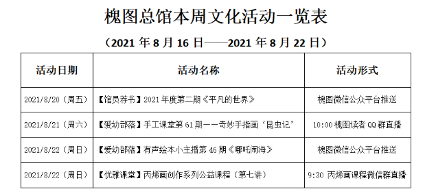 活动预告|槐图本周活动上新啦!(8月16日-8月22日)