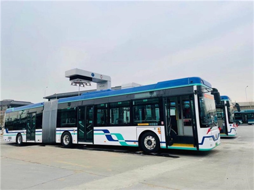 2020年以来,济南公交在省内率先使用充电弓技术,陆续在BRT-1、BRT-2等公交线路推广使用。相比于传统公交充电站,下压式充电弓系统布设在公交场站的候车区,占地面积大幅减少;采用大电流快充技术,最大充电电流达到800A,可利用公交发车班次间隔快速补充电量,大大提高了充电效率,有效了缩短车辆停场时间。