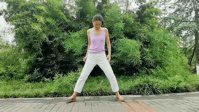 右手摸左脚,左手摸右脚
