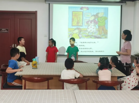 活动中,石老师带领小读者们以角色扮演的方式演绎了该绘本故事中的精彩片段,大家模仿的惟妙惟肖,勇敢的展现出了不同角色的情绪及语言,教室回荡着孩子们的欢声笑语。