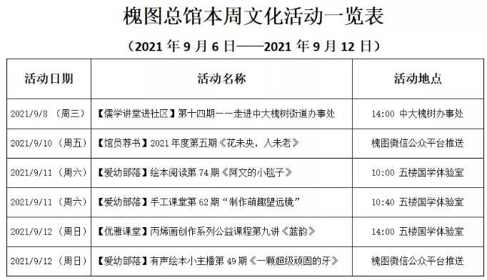活动预告|槐图本周活动上新啦!(9月6日-9月12日)