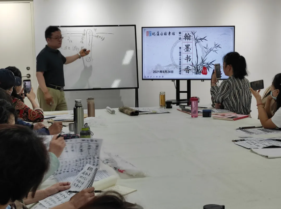 书法艺术是中华文化的瑰宝,中国书法源远流长,为了丰富广大读者的精神文化生活,提高书法爱好者的创作水平,由槐荫区新时代文明实践中心、槐荫区图书馆主办的第二届翰墨书香成人书法研习班第一期课程于2021年9月24日成功举办,共有十余名读者参与了本次书法学习之旅。