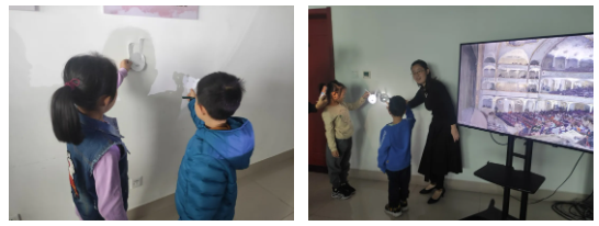 胡老师睿智博学、语言幽默风趣,用事先制作好的卡通图片演绎出绘本故事中的人物。在活动中,小读者也纷纷上台体验投影的过程,更加直观地了解光沿直线传播、小孔成像原理,在胡老师的带领下,大家进入了科学的世界。胡老师告诉大家,热情和善良的人,总会拥有自己的“剧院”。